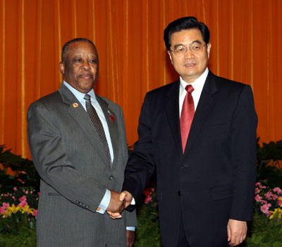 counterpart Festus Mogae at the Great Hall of the People in Beijing Thursday,