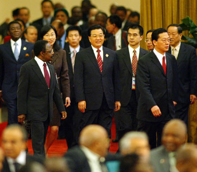 walk into the site for the Roundtable of Chinese and African Leaders