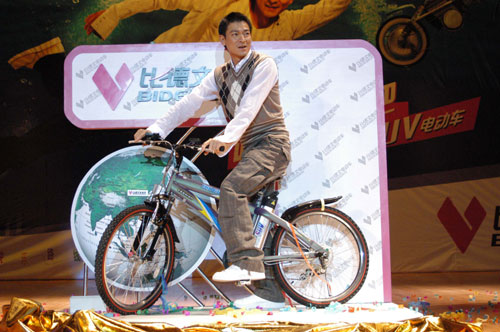 Andy Lau, a well-known Hong Kong pop star, promotes for the Bidewen