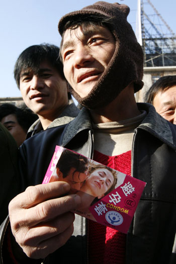 condoms during an "HIV/AIDS Awareness Program" at a construction site in Beijing