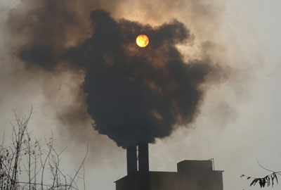 Smoke spews out of chimneys at a cement plant in Wuhu, east