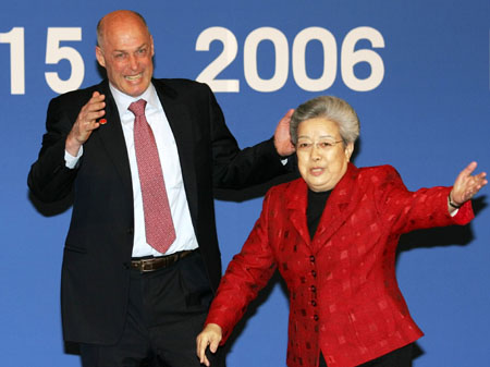 Chinese Vice Premier Wu Yi (R) and U.S. Treasury Secretary Henry Paulson (L)