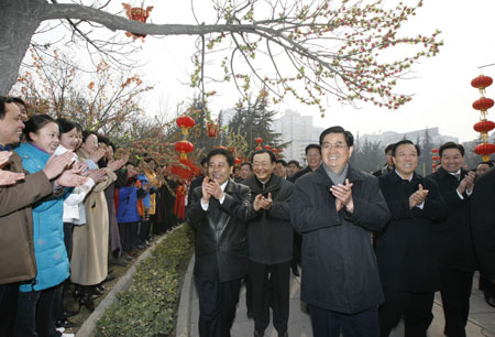 China's Lunar New Year, Chinese President Hu Jintao visited local residents,