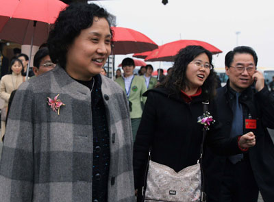 Members of the Chinese People's Political Consultative Conference from Chongqing Municipality arrive at the Capital International Airport in Beijing March 1. The country's top advisory body is slated to convene for an annual sesson starting from Saturday. [Xinhua]