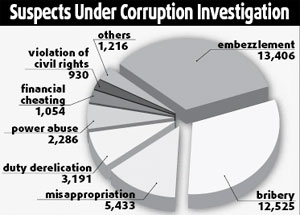 dereliction of duty, of which 8,310 were bribery cases involving government