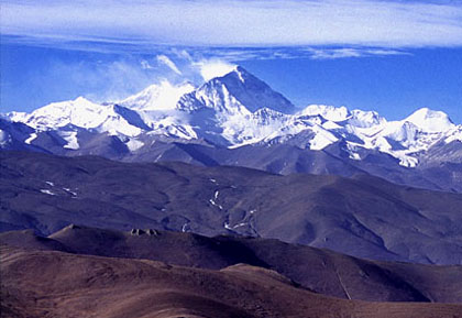 A scene of the Mount Everest on the Tibetan