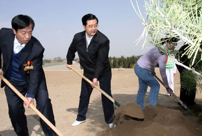 Many parts of northern and northwestern China were bracing for two more days of sandstorms as senior leaders, including President Hu Jintao and Premier Wen Jiabao, joined 2 million people to plant saplings in Beijing yesterday to combat the change in climate. The China Meteorological Administration (CMA) has forecast severe sandstorms in Nanjiang Basin of the Xinjiang Uygur Autonomous Region and western parts of Gansu Province over the next two days. Beijing, however, will not be hit by any of the storms.