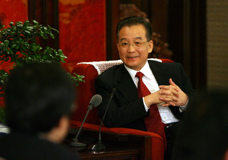 Premier Wen Jiabao meets with a group of Japanese reporters in a joint