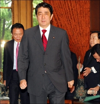 Japanese Prime Minister Shinzo Abe arrives for a cabinet meeting at the National Diet in Tokyo, 08 May 2007. [File]