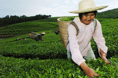 Farmers pick tea leaves in Anlong, Southwest China's Guizhou Province May 30, 2007. Guizhou is one of the country's major tea production bases. [Xinhua]