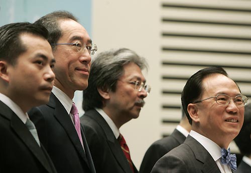 Tang (2nd L) and Financial Secretary John Tsang, announces the new team of