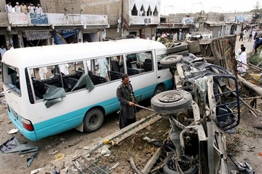 Television reports showed how the blast ripped off the front of several roadside shops. Several damaged cars and buses lay rammed into one another among a tangle of bricks and clothing.