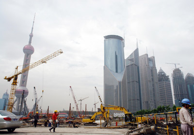 Workers work at a construction site in Shanghai May 26, 2007. [newsphoto]