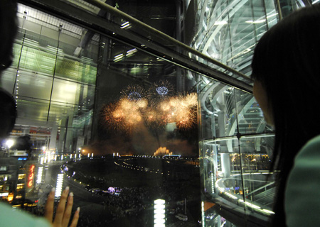 Summer Davos closes with fireworksUpdated: 2007-09-09 13:31 ![]() People watch fireworks in an office building during the closing day of the three-day Summer Davos meeting held in Dalian, Northeast China's Liaoning Province, September 8, 2007. [Xinhua]