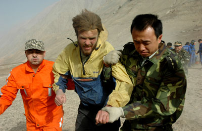 The man, identified as Alexander Zverev, was walking along the upper reaches of a section of the Yurungkax River, in Xinjiang Uygur Autonomous Region when Chinese and Russian rescuers spotted him from the air. A rescue helicopter picked him up at about 10:00 a.m. and transported him to nearby Hotan city. Zverev had no belongings with him and his shoes were worn out, said Li Yongjun, a Chinese helicopter pilot in charge of the rescue operation. "He kept walking back and forth on the aircraft and trying to talk. He appeared exhausted, but very excited," said Li. The 35-year-old Russian tourist said that his traveling companions had been killed in two separate accidents, when their boats overturned, according to Russian media reports. The first occurred on August 24, killing two men and the next on August 27 when another boat carrying four passengers, including Zverev, toppled, the reports said. He said he lived in a cave for 20 days, using tree branches to keep warm. "Every evening I made a bed for myself from tree branches, tried not to get cold, to preserve heat to keep the body warm," he was quoted as saying. The reports said that Zverev has told rescuers where the bodies were but that it would be difficult to reach the remote area. Arriving at Hotan airport at 11:40 a.m., Zverev stepped down from the helicopter and hugged Russian rescuers. The first survivor of the party found since the search was launched early this month is under close observation in Hotan People's Hospital. "It is a miracle that Zverev managed to survive in an uninhabited mountainous area at an elevation of 4,000 meters," said Zhang Shaoyun, deputy chief of the local rescue headquarters. A group of six Russians arrived at the upper reaches of the Yurungkax River on Kunlun Mountain of western Xinjiang on August 19 and planned to begin a rafting trip two days later. However, they failed to meet their Chinese interpreter in the southern city of Hotan on Sep. 2 as scheduled. The bodies of three Russians, including a father and son, have been recovered. Medical experts said they had fallen into the river and drowned. Rescuers are still searching for the other missing, particulaly around the area where Zverev was found according to clues he provided. The search was suspended earlier this week due to persistent sandstorms. Rescuers are now relying more on helicopters than ground searches. Doctors said Zverev, weighing 58 kg, a full 24 kg less than a month ago, was suffering from dehydration and malnutrition. "But his blood pressure, pulse and lungs appear perfectly normal," said Miao Xinrong, deputy president with the Hotan People's Hospital where Zverev is hospitalized, "his excrement contained green fibers, which indicates he might have eaten plants." |