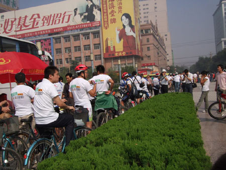 Jinan residents are ready for the bicycle-riding event on “Car-free Day” Saturday, September 22, 2007.[chinadaily.com.cn]