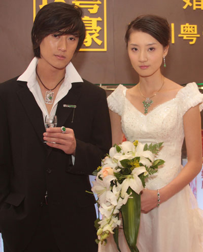Models display ornaments for wedding ceremony during the 2007 China International Jewellery Show at China International Exhibition Center in Beijing, November 1, 2007. [newsphoto]