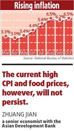 The CPI, a key gauge of inflation, grew 6.2 percent in September. Food prices, up 17.6 percent year-on-year, are the major factor behind the resurging CPI. Prices of fresh vegetables rose sharply in October, too - nearly 30 percent year-on-year. And that is a new trend.