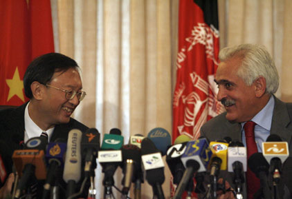 Beijing also hoped for a "positive outcome" from dialogue between Iran, Europe and the International Atomic Energy Agency on talks over the Iranian nuclear issue, Yang said. The foreign minister arrived in Kabul from Tehran where he held talks with President Mahmoud Ahmadinejad on Iran's controversial nuclear drive. "China believes Iran has the right for the peaceful use of nuclear energy," Yang told reporters in Kabul, responding to a question at a media briefing after talks with his Afghan counterpart Rangin Dadfar Spanta. "At the same time we also stress that the international nuclear non-proliferation regime must be safeguarded," he said. The Afghan and Chinese foreign ministers also signed documents for the handover to Afghanistan of 80 million yuan (US$10 million) in aid committed last year. China, which shares a short border with Afghanistan, has so far given US$160 million towards the reconstruction of post-Taliban Afghanistan, Spanta said. A statement released after the foreign ministers' meeting said Afghanistan and China recommitted themselves to cooperation including in defence and security. "Both sides agreed that terrorism constitutes an international menace as it poses a grave threat to world peace and security. China and Afghanistan are both victims of terrorism," it said. China would encourage investment in Afghanistan, the statement said, while Afghanistan "reaffirmed that there is only one China". Yang later held talks with Afghan President Hamid Karzai. |