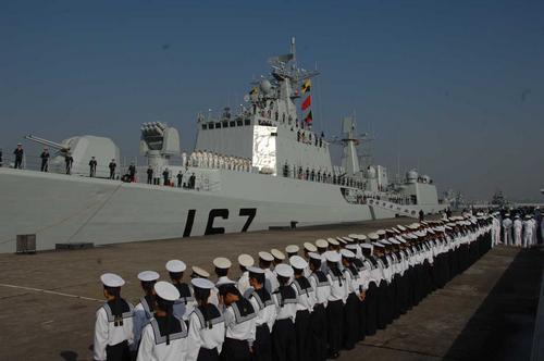 The missile destroyer "Shenzhen" leaves Zhanjiang on November 21, 2007 for a port call to Japan, the first such visit in the history of the naval forces of the Chinese People's Liberation Army. [sina]