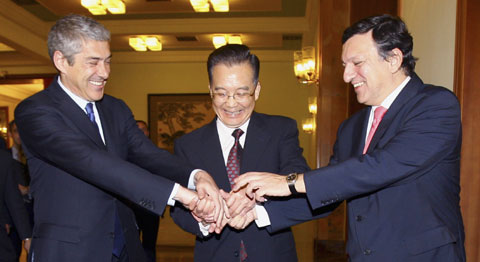 China and the European Union (EU) Wednesday agreed to set up two separate high-level dialogue mechanisms on trade and finance to address disputes over trade imbalances and the exchange rate reform of the renminbi. Premier Wen Jiabao, Jose Socrates, prime minister of Portugal - which holds the rotating EU presidency - and Jose Manuel Barroso, European Commission president, agreed to launch the dialogue mechanisms in March next year at the 10th China-EU Summit in Beijing. The Chinese government will further let the market determine the renminbi exchange rate and allow more flexibility in its trading band, Wen said at a joint news conference with the EU leaders after a 90-minute meeting. But he emphasized China will act "in a proactive, manageable and gradual manner," with a view to gradually enabling capital account convertibility. Europe has complained that an "undervalued" yuan and the rising euro are a key reason for the rising bilateral trade deficit. Wen acknowledged that the exchange rate played a certain role in the imbalance, but said it was not the sole factor. "The exchange rate is a cause, to some extent, but not the sole decisive factor for the trade deficit," Wen said at a China-EU Business Summit before he met with the EU leaders. He said China has never intended to pursue a trade surplus, adding that efforts are being made to promote domestic consumption to achieve more balanced trade. "The Chinese government attaches great importance to the EU's concerns over the trade imbalance. We have, and will continue to, put in place measures aimed at expanding imports and promoting more balanced bilateral trade," Wen said. During a meeting with Jean-Claude Juncker, prime minister of Luxembourg and chairman of the Eurogroup of finance ministers, Wen called on the United States, the EU and Japan to shoulder the main responsibility for keeping the international currency system stable. The euro has appreciated greatly in recent years due to the declining US dollar and international market turbulence, he said. Wen pointed out that EU exports to China have grown at an annual rate of more than 20 percent over the last two years, compared to the 15 percent average growth rate elsewhere. He responded to another concern frequently aired by the EU - a lack of strong enforcement of intellectual property rights - by saying that China has been "sincere" in IPR protection. He said China has, over the past 20 years, set up a "relatively complete" IPR legal framework and strengthened enforcement, which has resulted in "phenomenal progress", adding that such progress took "centuries" in developed countries. Leaders from the two sides also discussed climate change, the China-EU partnership on Africa and the Taiwan question. Socrates said the strategic partnership between the EU and China is beneficial to Europe, China and the world at large. He said the EU hopes the two sides can take constructive action to find a trade balance. He appreciated China's role in major regional and international affairs such as the Korean Peninsula and Iran nuclear issues, saying EU-China cooperation will help resolve global issues. Barroso hailed the meeting as a "success" and said it has achieved "pragmatic results". The EU leaders assured Wen that the EU strictly adheres to the one-China policy. |