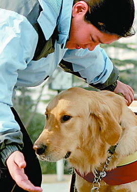 "Lucky" is a 19-month-old golden retriever, one of the first five guide dogs that recently graduated from a training center affiliated to Dalian Medical University in Liaoning.