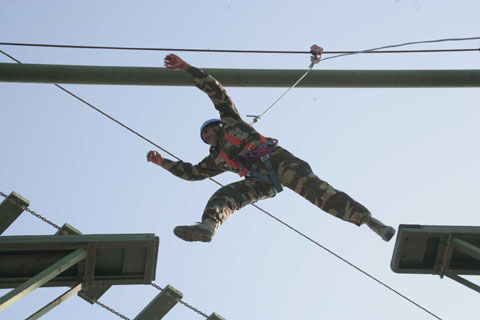 An Indian solider jumps during the the China-India anti-terror exercise in Kunming, Yunnan Province December 22, 2007. [Xinhua]