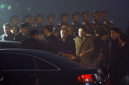 Japanese Prime Minister Yasuo Fukuda arrives at Beijing international airport December 27, 2007. Fukuda is scheduled to meet President Hu Jintao, top legislator Wu Bangguo and Premier Wen Jiabao on Friday. [Agencies]