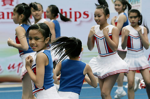 Cheerleaders compete at a competition in Hong Kong on January 19, 2008. [Xinhua]