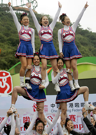 Cheerleaders from Japan perform at a competition in Hong Kong on January 19, 2008. [Xinhua]