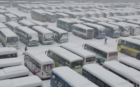 Zheng Guoguang, chief of the China Meteorological Administration (CMA), yesterday said the icy temperatures, snow and sleet, which have struck much of the country's central, eastern and southern regions for two weeks, are likely to continue to disrupt transportation through the Spring Festival, as temperatures show no signs of rising. The holiday, which begins on Feb 6, is the most important on the Chinese calendar and railway officials had estimated a passenger flow of 178.6 million people - the size of the combined population of Italy, France and Britain. But thousands of travelers have ended up being stranded in crammed stations after electric trains were stalled. "For the sake of their safety, and relieving the stress on transport, I advise migrant workers to stay in the cities where they work," Zheng told China Daily. Earlier, the meteorological agency had appealed to residents to avoid unnecessary outdoor activities. "There is an interval of reduced rainfall and snow forecast for around Saturday, but you can't expect power-cut-hit railways and icebound highways to be restored to normal immediately." There are reports that traffic flow is improving in central and southern provinces but hundreds of thousands of passengers are still trapped on highways and rail stations. Zheng explained that the most severe winter weather seen in China for half a century was largely caused by the steady cold fronts from the north reacting with the continuous flow of warm humid currents from the south.
