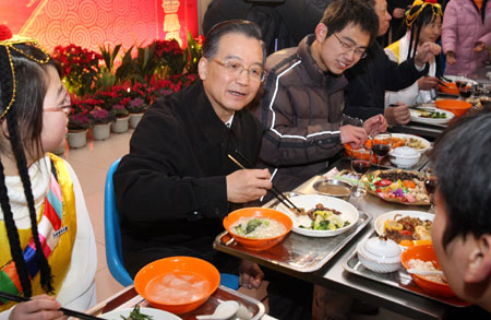 Then Wen visited Jiangxi University of Finance and Economics, where he had Lunar New Year dinner with students who couldn't go home for holiday.