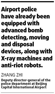 "Airport police have already been equipped with advanced bomb detecting, moving and disposal devices, along with X-ray machines and anti-riot robots.