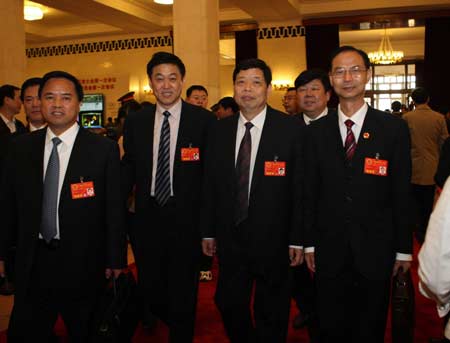 Deputies to the First Session of the 11th National People's Congress (NPC) walk to attend the opening of the NPC session at the Great Hall of the People in Beijing, capital of China, March 5, 2008. The First Session of the 11th NPC opens on Wednesday. [Xinhua]