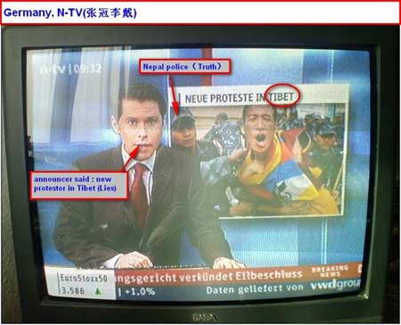 German news television N-TV on Monday admitted that a picture and a video sequence it used on March 20 in a report about the riots in Tibet had actually been taken in Nepal, a neighboring country of China.