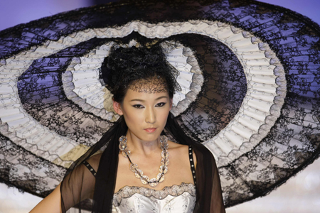 A model presents a creation for Ordifen undergarment elements release at China Fashion Week 2008 in Beijing March 27, 2008. [Agencies]