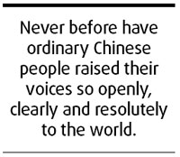 Never before have ordinary Chinese people raised their voices so openly, clearly and resolutely to the world on issues related to China's Tibet. As a journalist who has worked for nearly three decades in China's international communications, I feel an unprecedented reinforcement in these expressions.