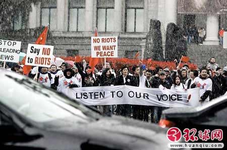 Overseas Chinese students hold banners and flags protesting the western media bias against China in reports on the recent Tibet riots in Vancouver. According to a report from Global Times, overseas Chinese have protested peacefully in Toronto, Vancouver, Calgary and Montreal in Canada, Munich and Brunswick in Germany, Auckland in New Zealand and Stockholm until April 2. [huanqiu.com]