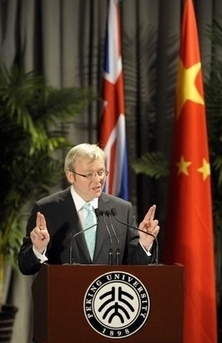 Australian Prime Minister Kevin Rudd delivers a speech at Peking University on April 09 2008. [Agencies]