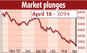 Updated: 2008-04-19 09:39 SHANGHAI: Investor confidence took a severe blow on Friday as shares in PetroChina, one of the largest companies on the Shanghai bourse in terms of capitalization, sank below their issue price for the first time, dragging the benchmark index under the psychological 3100 barrier, to its lowest point since March of last year. The Shanghai Composite Index fell 128.07 points, or 3.97 percent, to close at 3094.67, with turnover falling to 56.1 billion yuan ($8.02 billion), down 12.1 percent on the previous trading day. The index posted its biggest weekly drop since 1996, after falling 11.4 percent. The smaller Shenzhen Component Index also slumped on Friday, ending down 3.13 percent at 11292.04 points, with turnover down 12.8 percent at 24.8 billion yuan. PetroChina fell 5.04 percent to 16.02 yuan, the first time it had dropped below its October initial public offering price of 16.70 yuan. Shares in PetroChina have dropped an aggregate 67.03 percent since Nov 5, from its offset trading price of 48.60 yuan on the Shanghai Stock Exchange. Zhang Xiaojun, an analyst at CITIC's China Securities, said: "Shares in PetroChina are likely to drop further in the coming months, because there is still about a 100 percent price premium over its H-share price. Big caps in the steel, property and energy sectors also took a beating on Friday. Analysts said investors' deepening worries about the expected fall in corporate earnings resulting from the surge in the price of crude oil and other industrial materials have continued to weigh down stock prices in those sectors. The first-quarter reports released by several investment funds on Friday indicated a sharp unloading of share holdings in recent months. The sell-off by funds could further dampen investor confidence, analysts said. The weak performance of many funds in the first quarter is widely expected to trigger a new wave of redemptions, forcing further unloading of shares by funds, they said. "Portfolio adjustments by investment funds indicating a sharp reduction in share holdings have magnified the bearish sentiment," Zhang said. "A bearish mood tends to be exacerbated by the weak performance of funds." the analyst added. |
