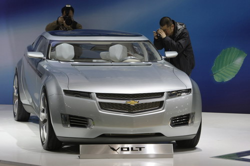 Visitors take pictures of Chevrolet Volt electric concept car at the Auto China 2008 show in Beijing April 20, 2008. [Agencies]