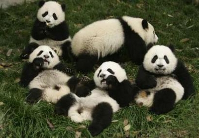 Panda cubs eat apples at the Chengdu Research Base of Giant Panda Breeding in Chengdu, Sichuan province, April 17, 2008. The giant panda is one of the world's most endangered species and is found only in China. An estimated 1,600 wild pandas live in nature reserves in Sichuan, Gansu and Shaanxi provinces, and 217 are kept in captivity. [Agencies]