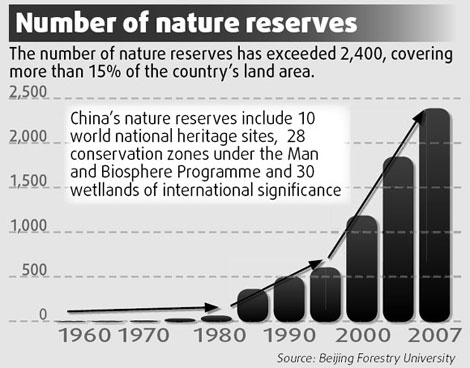 Li Zhong, an official in charge of the nature reserves office with the State Forestry Administration, also emphasized the importance of increasing investment in such reserves at all levels.