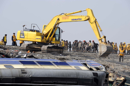 Updated: 2008-04-28 23:42 ![]() Workers repair the damaged section of the Jinan-Qingdao Railway in East China's Shandong Province, April 28, 2008. [Xinhua] More photos for train collision |