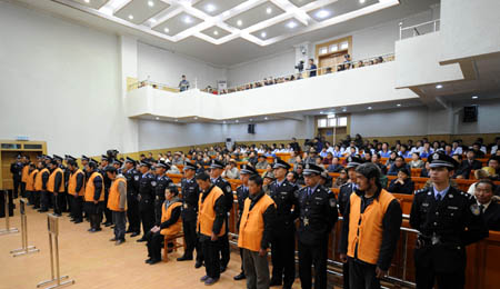 Three were sentenced to life and the others received terms ranging from three to 15 years, according to the Intermediate People's Court of Lhasa, which passed down the sentences at a public court session on Tuesday in the autonomous region.