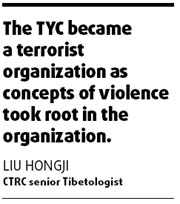 The Tibetan Youth Congress (TYC) is a stubborn advocate of "Tibet independence" supported by the Tibetan "government-in-exile", which upholds violence and has become an armed spearhead of the 14th Dalai Lama group, says a senior Chinese Tibetologist.