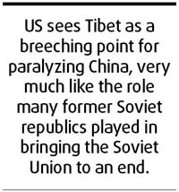 In the eye of Washington a socialist China with growing national strength is a major rival capable of challenging the US hegemony. Naturally, checking China's rise became the core objective of the US' China policy, while the "Tibet issue" was once again employed as an important and realistic means to attack China. The US sees Tibet as a breeching point for paralyzing China, very much like the role many former Soviet republics played in bringing the Soviet Union to an end, and needed no convincing to reuse the Dalai Lama for the purpose.