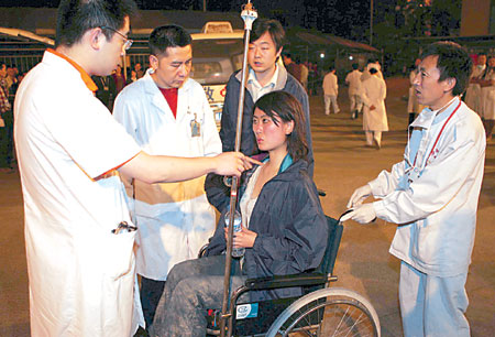 We eventually arrived in Dujiangyan, and doctors sent our group to Chengdu by ambulance.