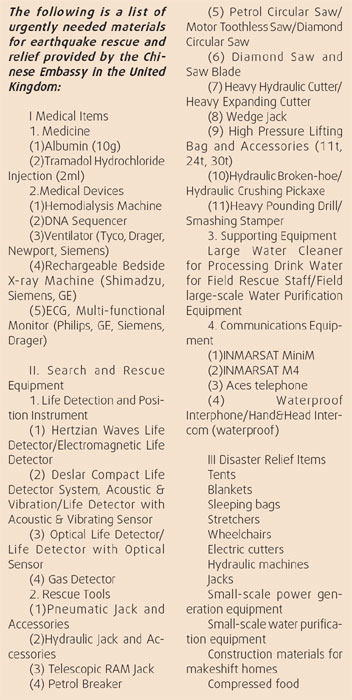 Requests for supplies continued even while this correspondent was talking to Jiang. He slept for only two or three hours a night on the first three days after the quake. Things are getting better now, so he can sleep for three to four hours.