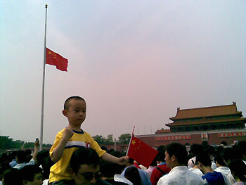 China Daily reporter Cui Xiaohuo were at the Tian'anmen Square as local residents rally to back up the nation and people in quake-hit areas.
